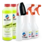 Two universal concentrate bottles are sufficient to clean the house, the car, for at least 3 months. These two concentrate bottles will make 20 spray bottles and each spray bottle can clean a 10 x 10 area.