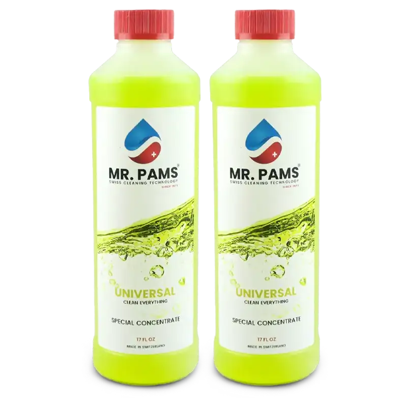 MR. PAMS UNIVERSAL is a safe, naturally gentle, soap-like and plant-based formulation, specially crafted for cleaning all surfaces that can withstand water contact. And it leaves your indoor environment with an incredibly fresh and healthy scent. MR. PAMS UNIVERSAL does not contain severe detergents, ammonia or bleach, or 2 butoxyethanol.
